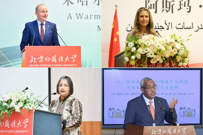 2023年,北外国际交流与合作开启全新篇章。爱尔兰副总理兼外交部长米哈尔·马丁、叙利亚第一夫人阿斯玛·阿萨德、斯里兰卡第一夫人麦特丽·维克拉玛辛、埃塞俄比亚副总理兼外交部长德梅克·梅孔嫩等先后到访学校,与师生亲切交流,引发广泛反响。毛里塔尼亚伊斯兰共和国高等教育和科学研究部部长尼昂·马穆都,北外“新汉学计划”博士校友、斯里兰卡交通与公路部长媒体部长兼内阁发言人班杜拉·古纳瓦拉特纳,白俄罗斯教育部第一副部长亚历山大·巴哈诺维奇,非盟委员会教育代表团等高端访问团来校交流。中非大学联盟交流机制中方秘书处在北外揭牌成立,为中非高等教育发展提供助力,北外国际交流合作水平不断提升。