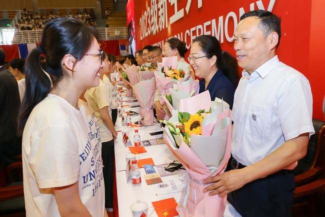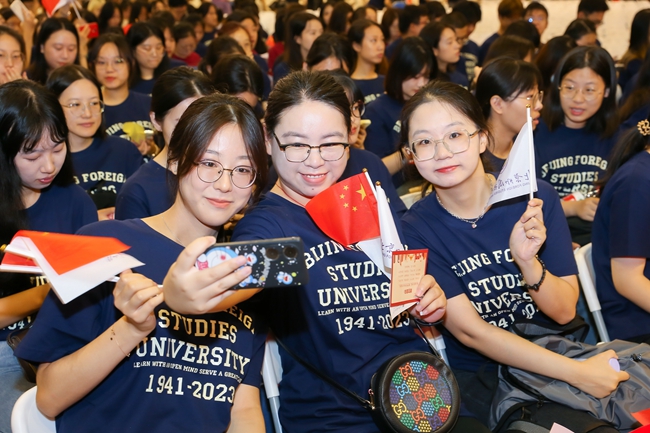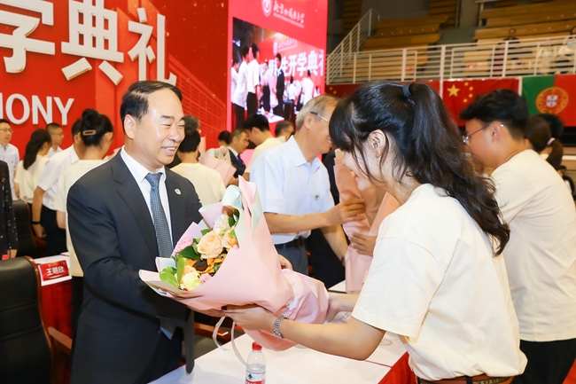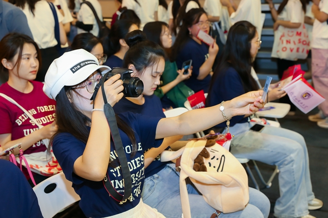 杨丹强调,来到北外,不仅仅是踏入了大学的校门,更是踏上了走向世界的阶梯,同学们将会感受到语言与文明的碰撞、眼界与思维的拓展。期望同学们不负时代、不负华年、不负青春,做又红又专又雅的北外人!