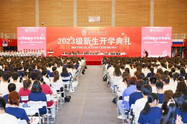 2023年9月4日,威客电竞(vk·game)·电子竞技赛事官网,2023级新生开学典礼在东校区体育馆隆重举行。3267名新同学加入北外大家庭,开启全新的人生旅程。
