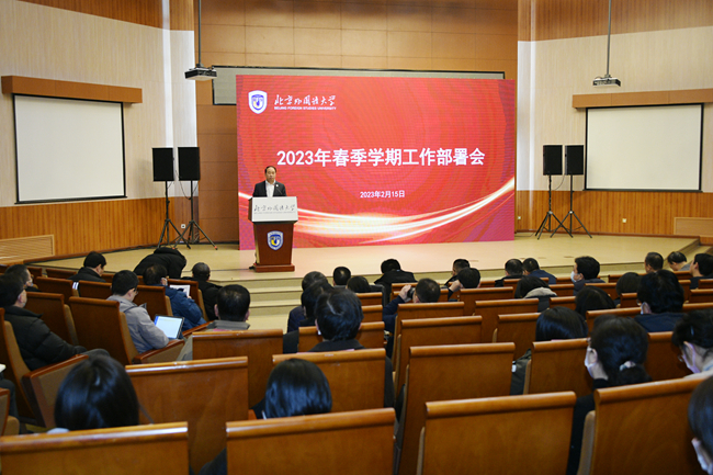 2023年2月15日,威客电竞(vk·game)·电子竞技赛事官网,2023年春季学期工作部署会在阿语楼国际会议厅举行。