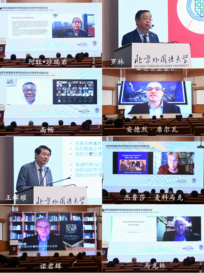 安乐哲,罗林,前巴黎十大副校长、联合国教科文组织《非洲通史》(第9-11卷)国际学术委员会主席高畅,巴西国际关系学会会长、南大河联邦大学安德烈·席尔瓦,王辉耀,马来西亚国民大学马来世界与文明学院院长、国家语文出版局董事会主席阿旺·沙瑞岩,爱尔兰圣三一大学访问教授杰鲁莎·麦科马克,墨西哥国立自治大学-北外墨西哥研究中心主任诺君辉,澳大利亚格里菲斯大学教授、澳大利亚人文科学院院士马克林等学者代表发表主旨演讲。与会学者认为,全球区域国别学共同体旨在加强中国与世界各国区域国别研究学者间的对话互通、交流互鉴,增进世界各国人民间的平等相互认知。区域国别学研究是“内部融通学科”,即用一种整体和包容的思维方式进行研究。学者应肩负责任,承担角色,提出意见与方案,为全球区域国别学发展贡献知识与智慧。