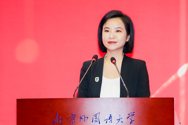 教师代表、北外法学院博士生导师万方教授在发言中结合十五载的执教经历,总结出北外青年勤奋踏实的作风、勇毅坚韧的品格以及心系祖国、兼怀天下的格局。希望同学们在成长过程中,秉承北外精神,踏实求学,勇于探索,以家国情怀和全球视野,肩负时代使命,绽放青春光彩。